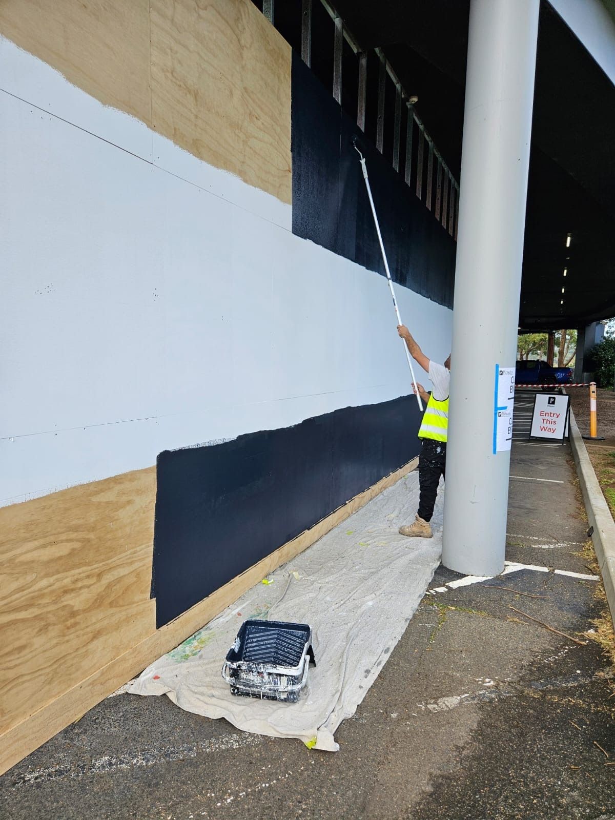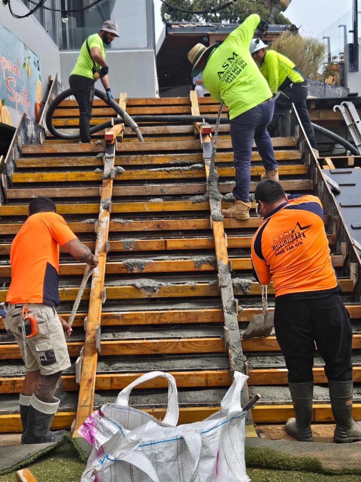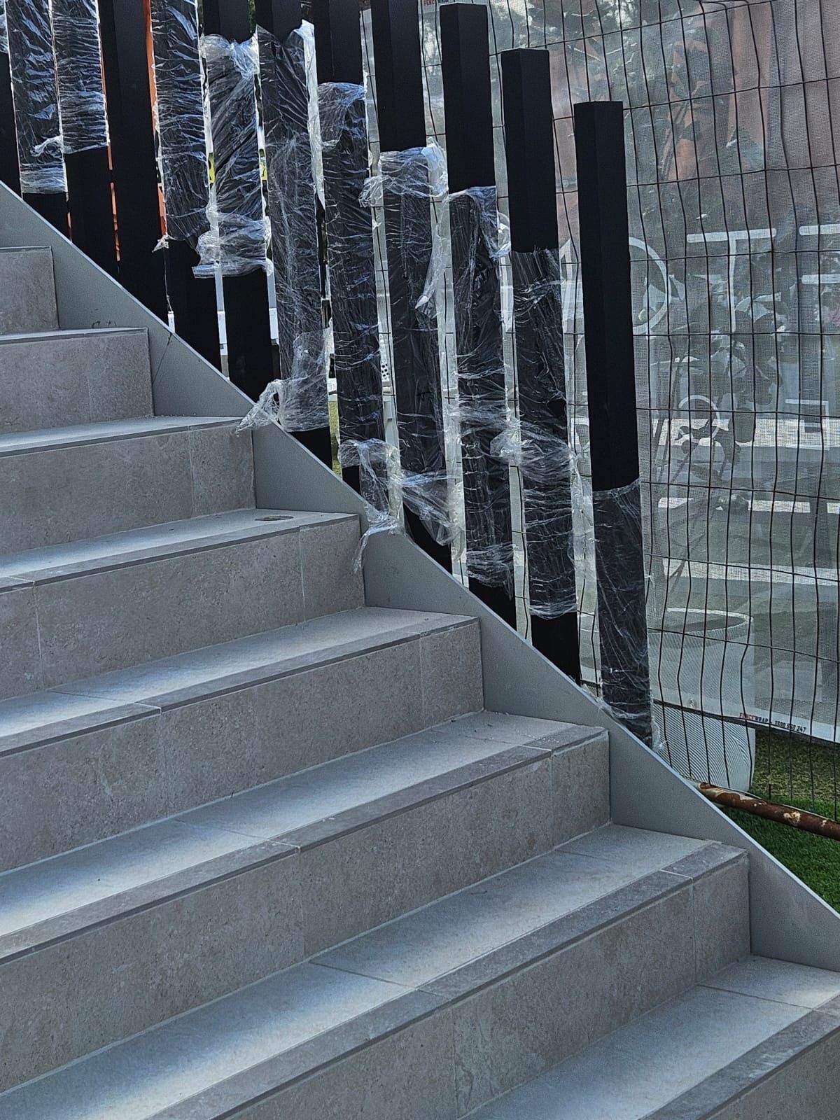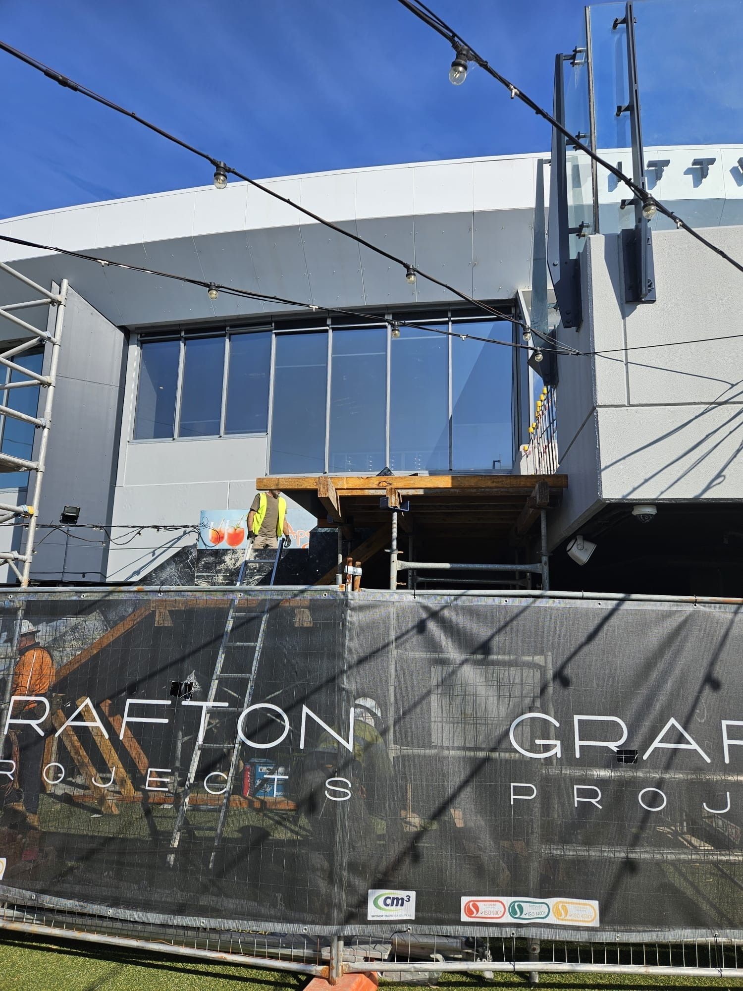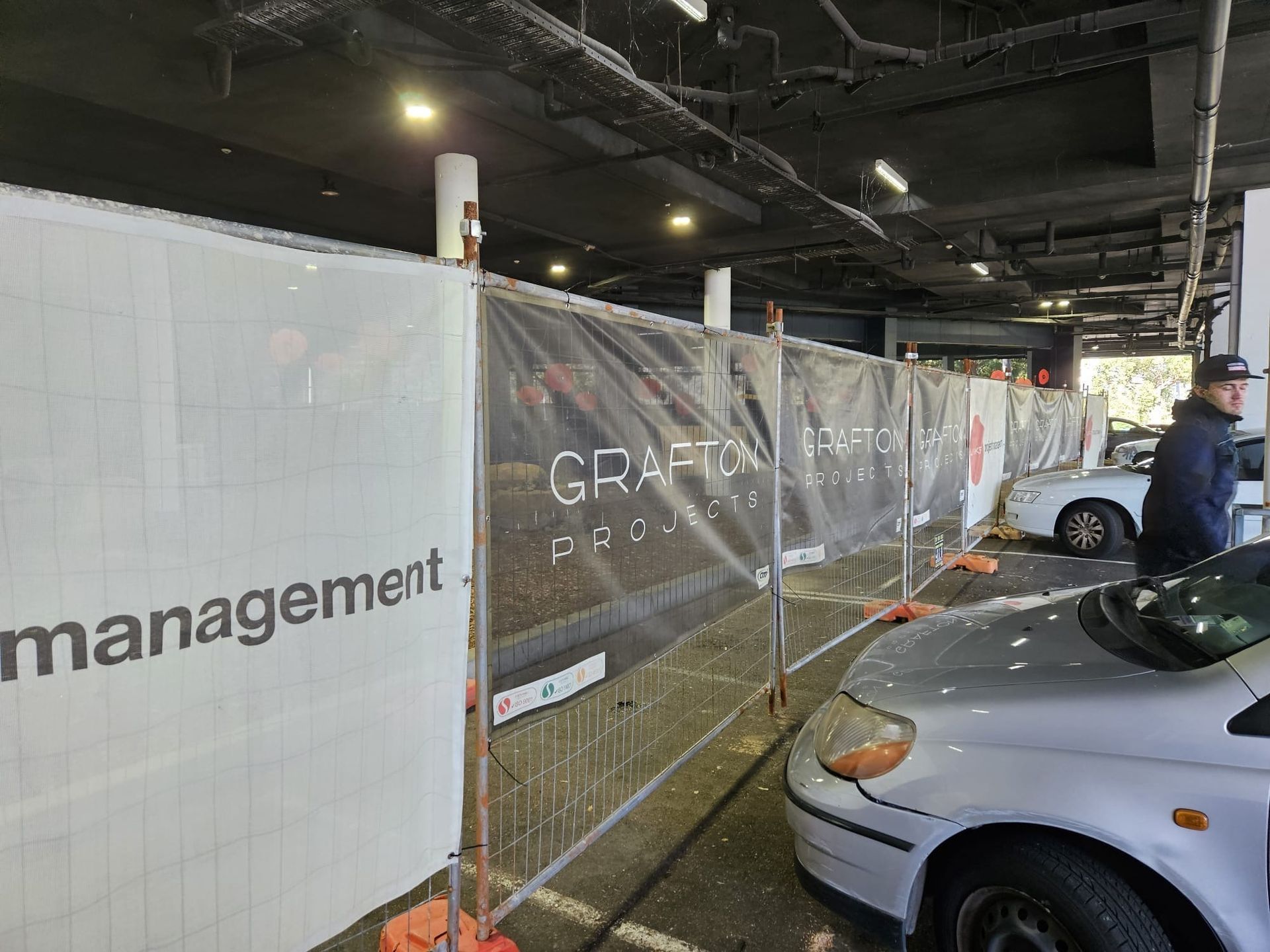- Preparing the hoarding in the car park and the new stairs take shape with removal of the risers.
