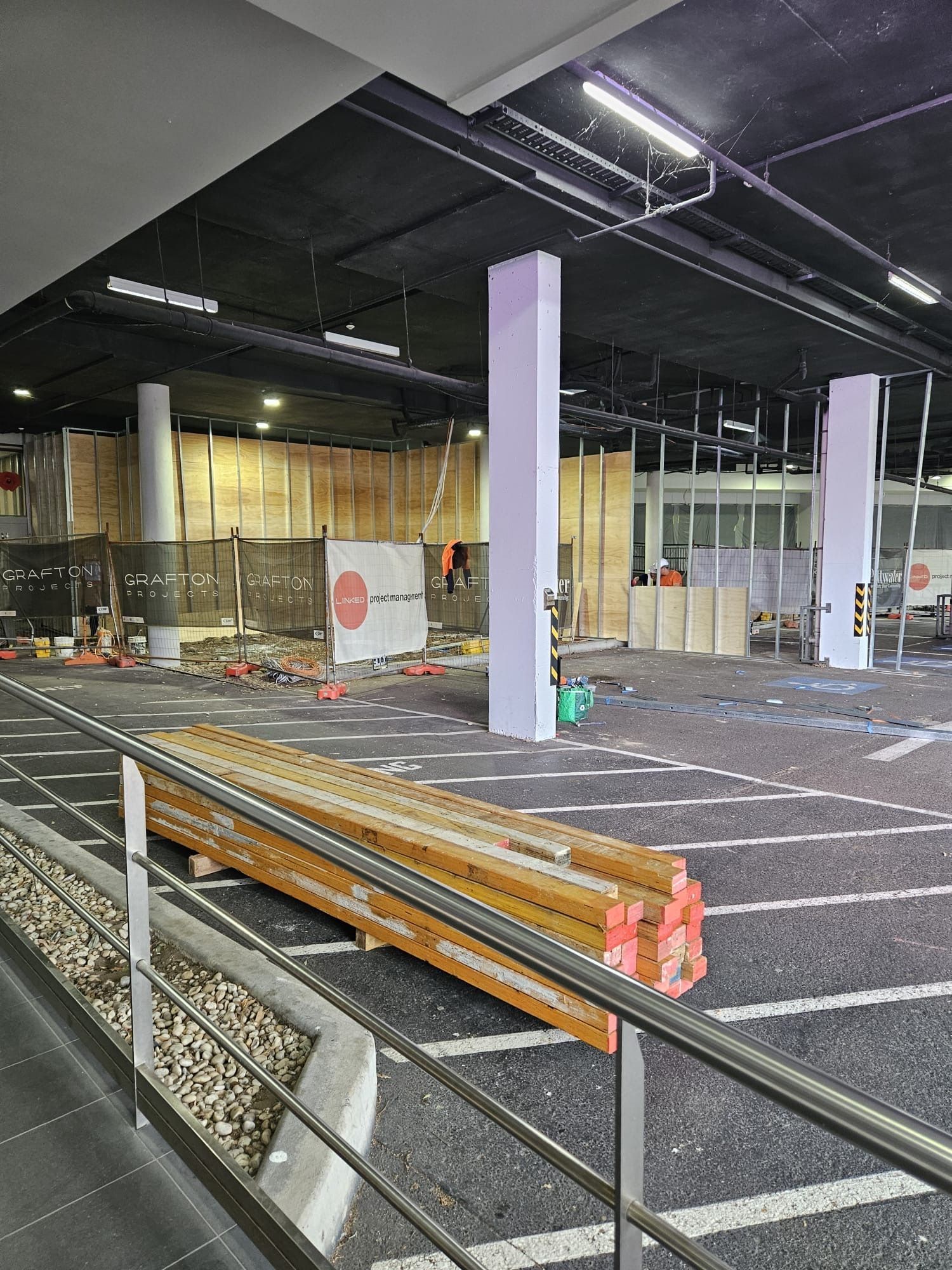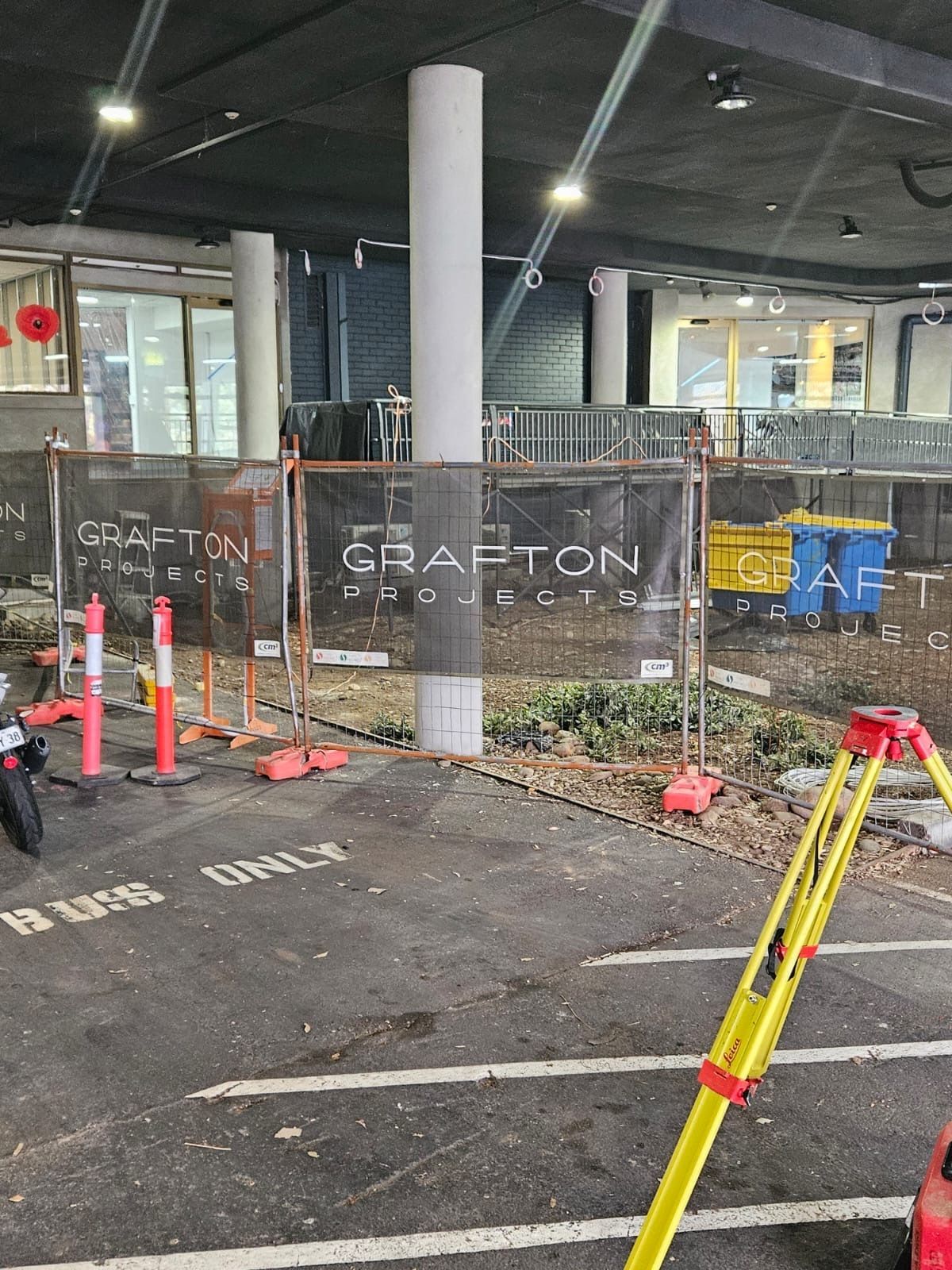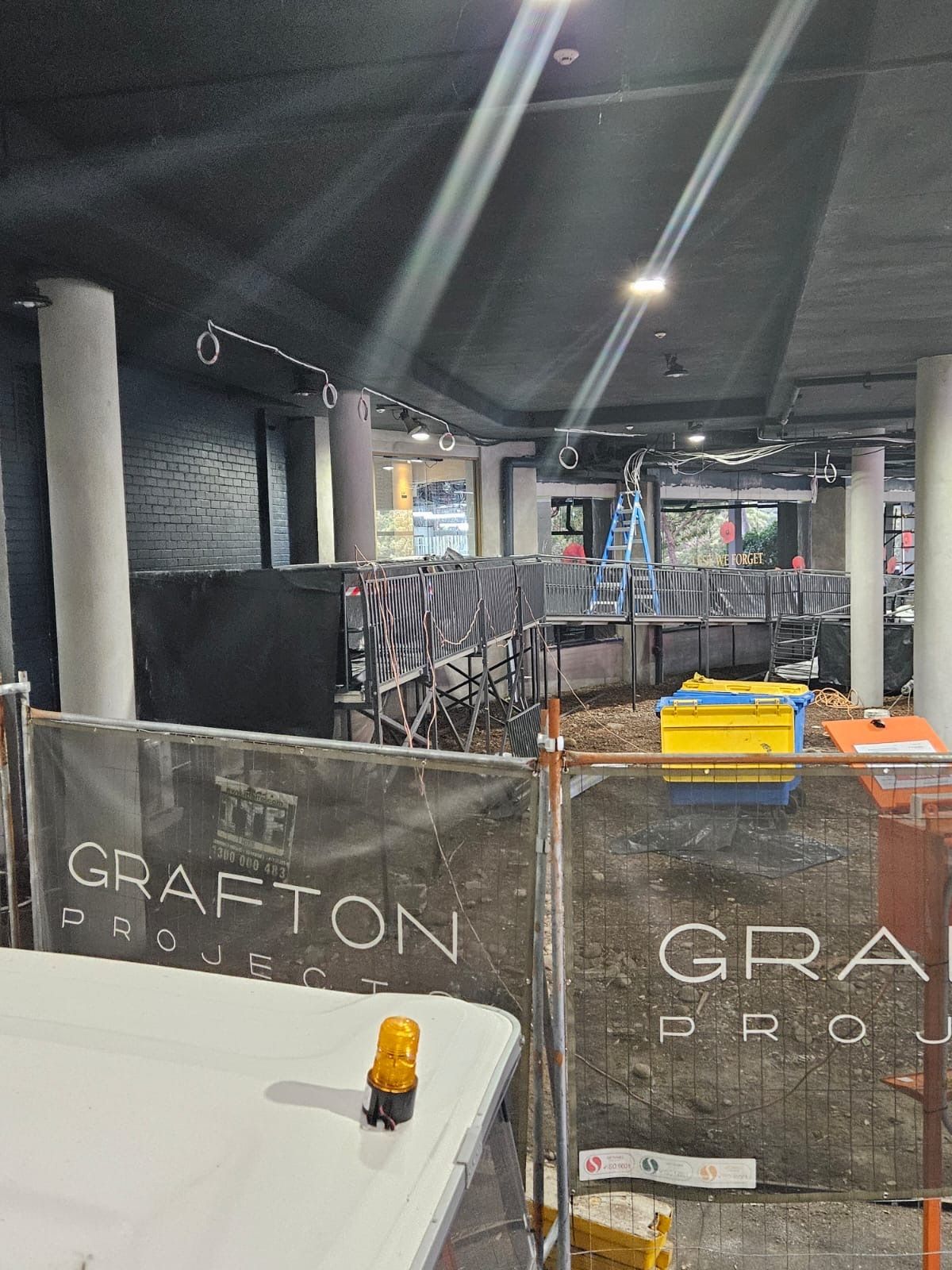 - The temporary entrance on the ground floor is still being worked on and hoarding is being built.
