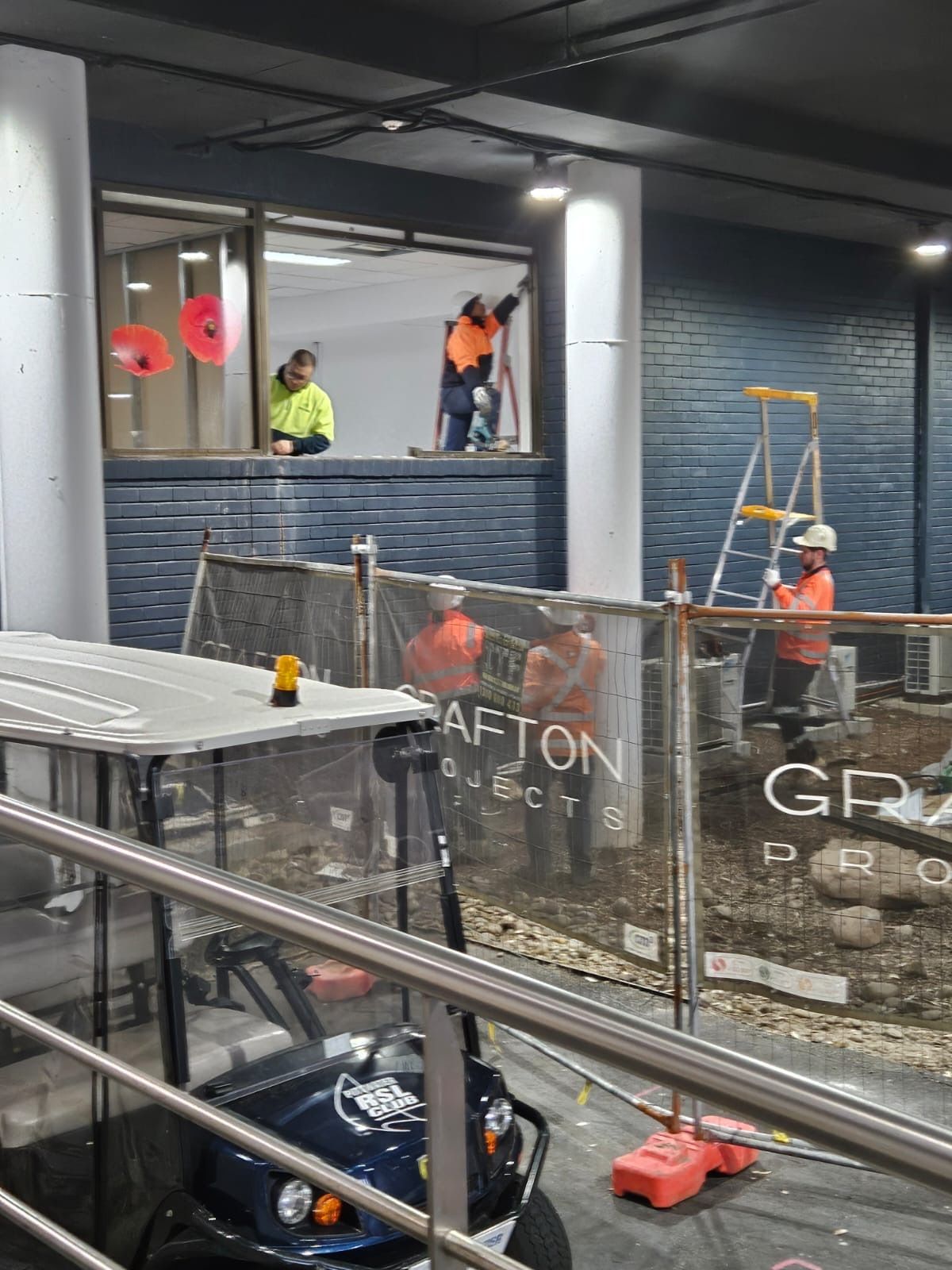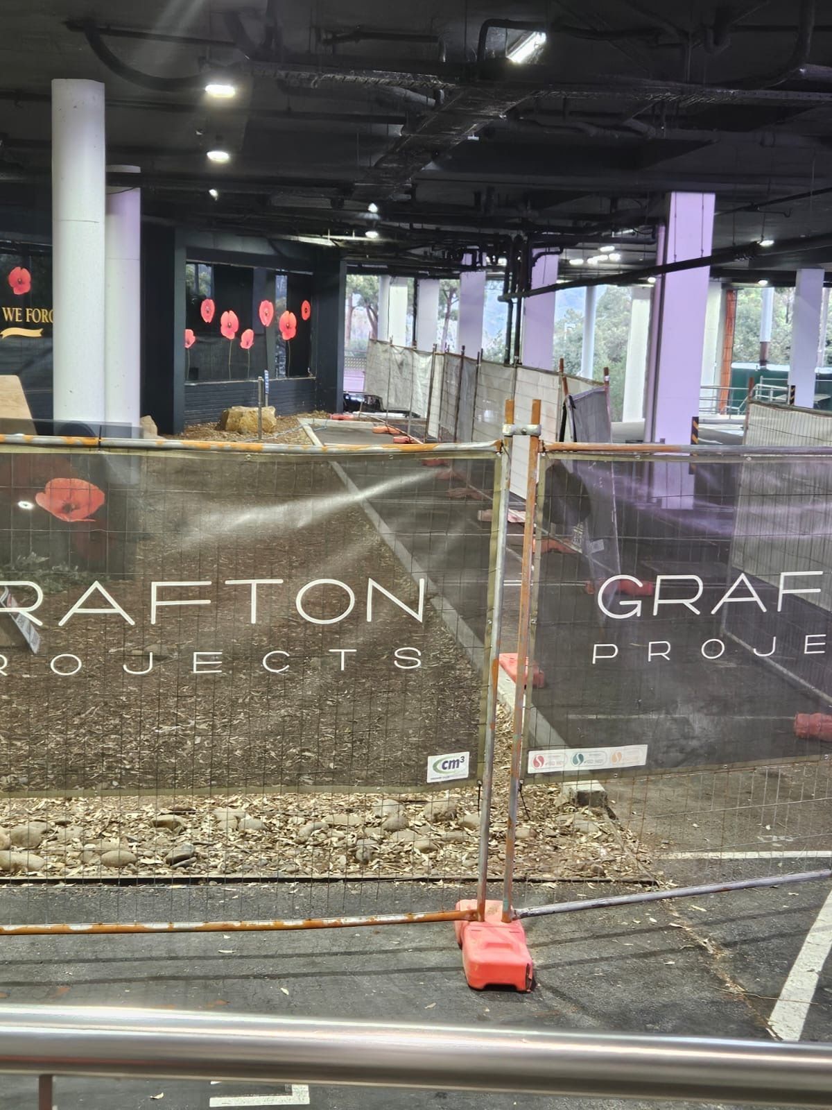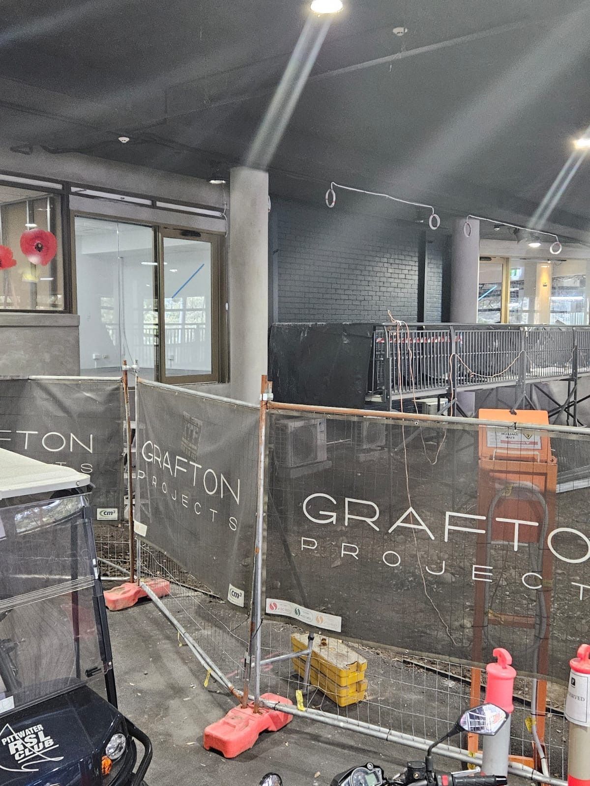 - The temporary entrance on the ground floor is still being worked on and hoarding is being built.