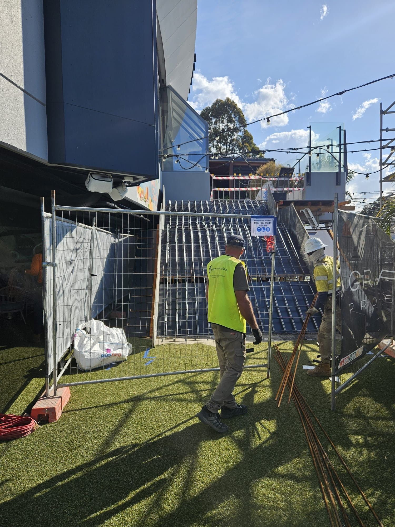 The Stage 1 redevelopment of Pittwater RSL is focused on transforming access, entry circulation, and overall functionality to enhance member and guest experience. Key early works involve the creation of a temporary entry point, including the construction of a compliant ramp, landscaping, and protective hoarding. This enables the commencement of major structural additions such as the new terrace stairway and the procurement of a lift.