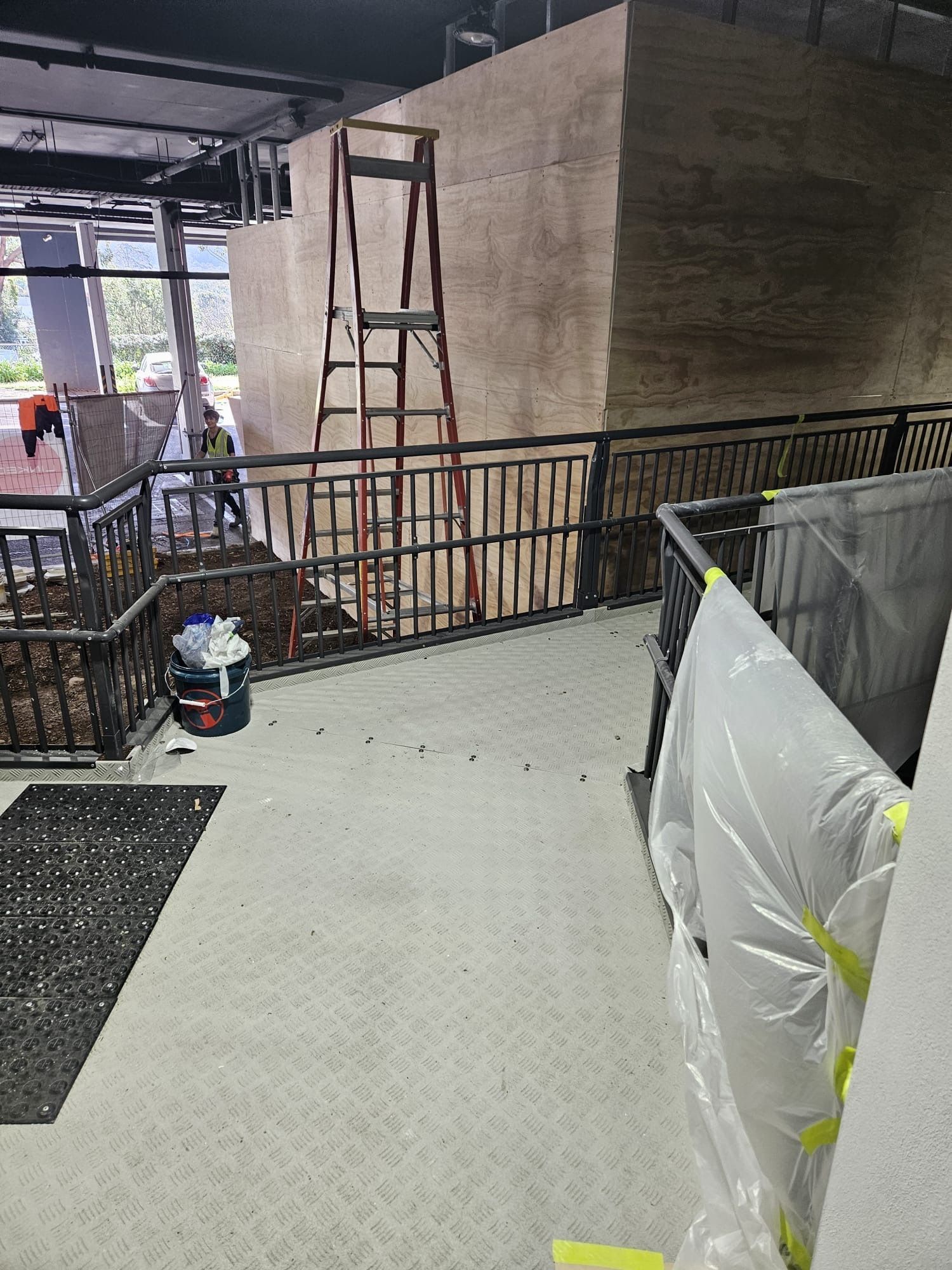 - The stairs leading from the Deck up to the Terrace are being built. A concrete pour for them will occur later in the week.