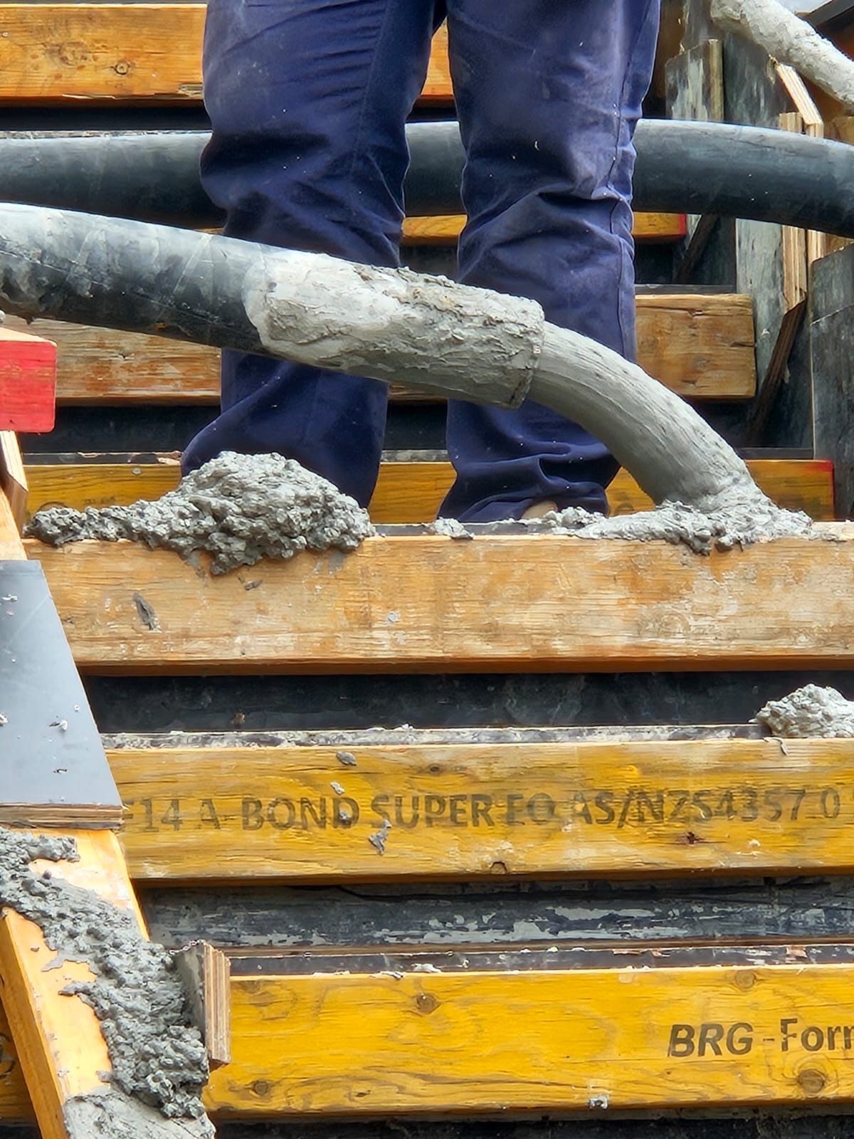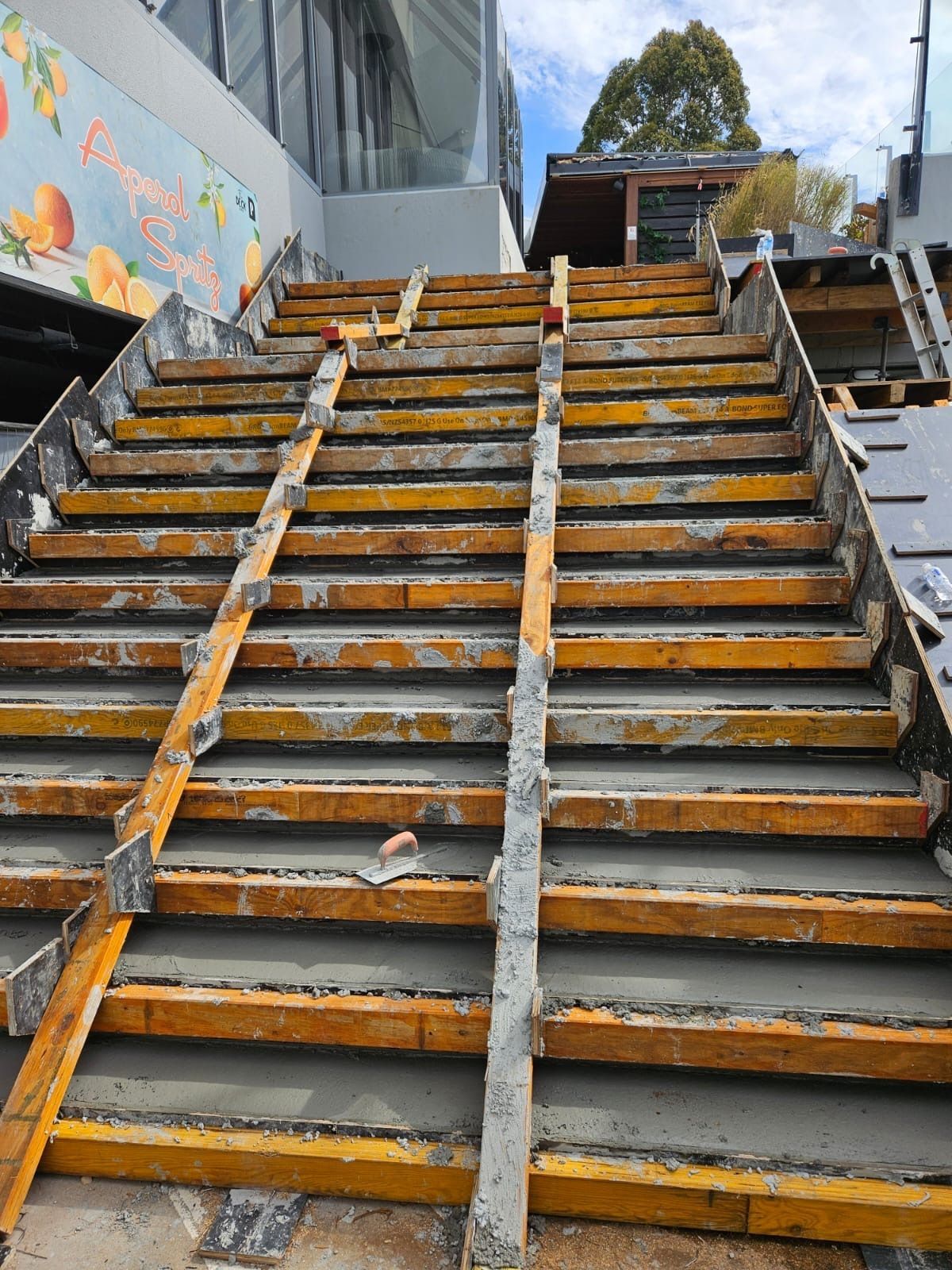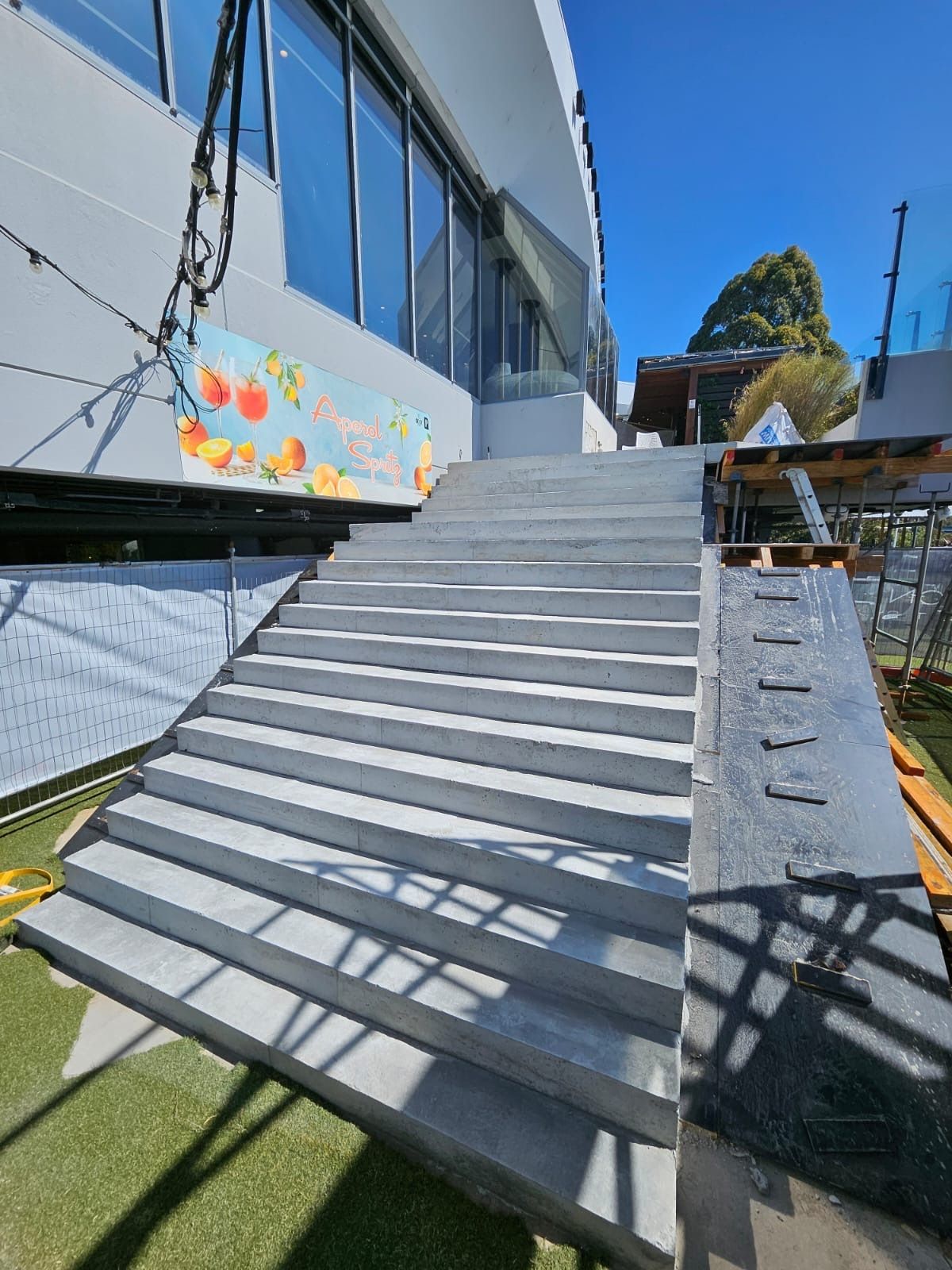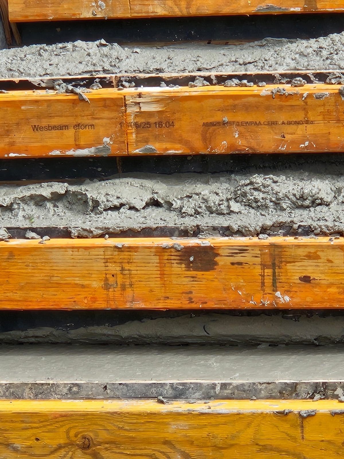 - The cement pour for the stairs leading from the Deck to the Terrace.