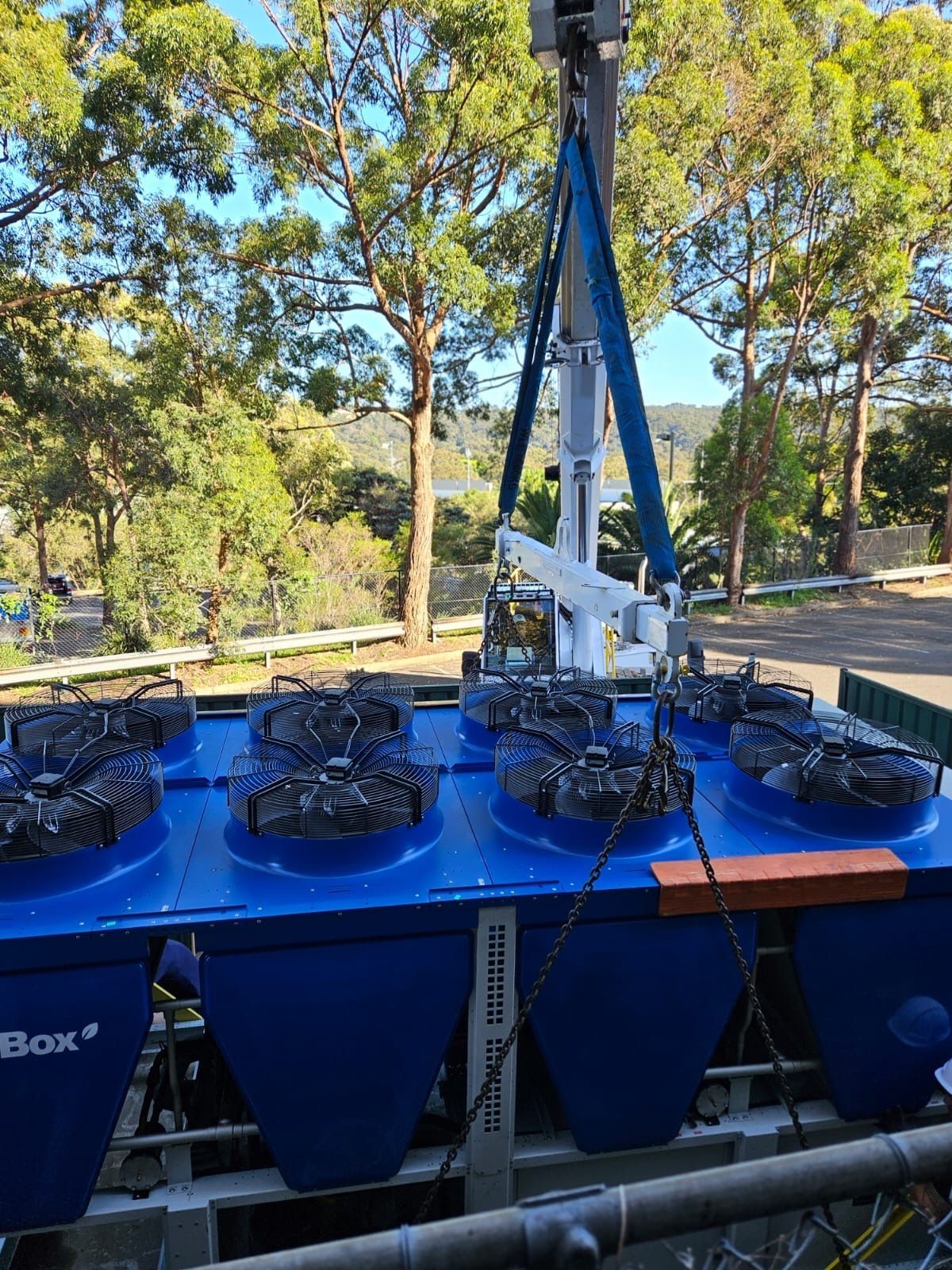 - Early start for the crane lifting the new cooler unit into place for our new air conditioning system part of major works.