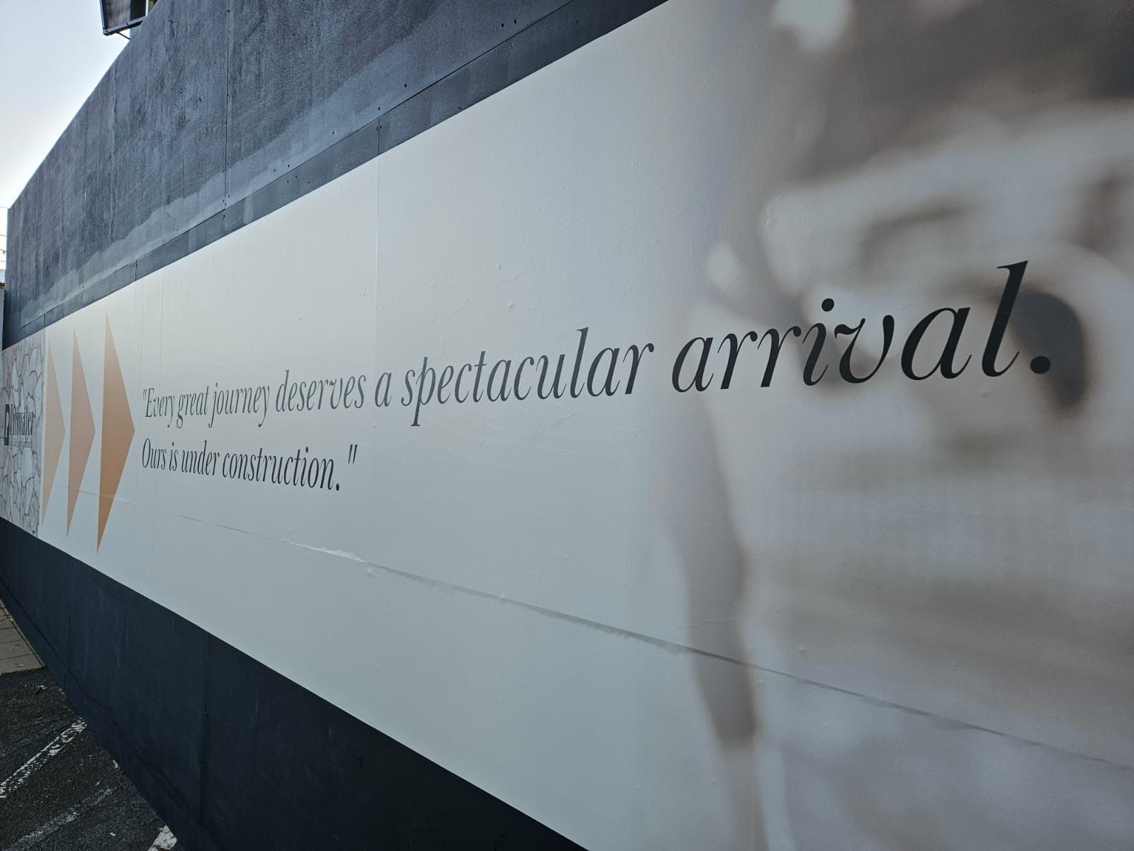 - Temporary hoarding installed with temporary ramp set to open soon.