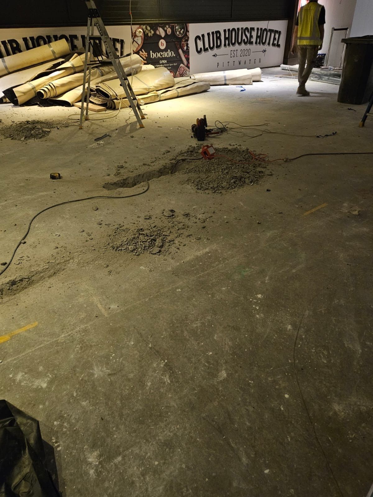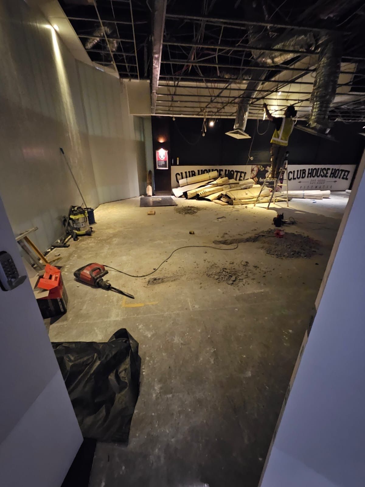 - Preparing for demolition of the floor to create the opening for the escalators.